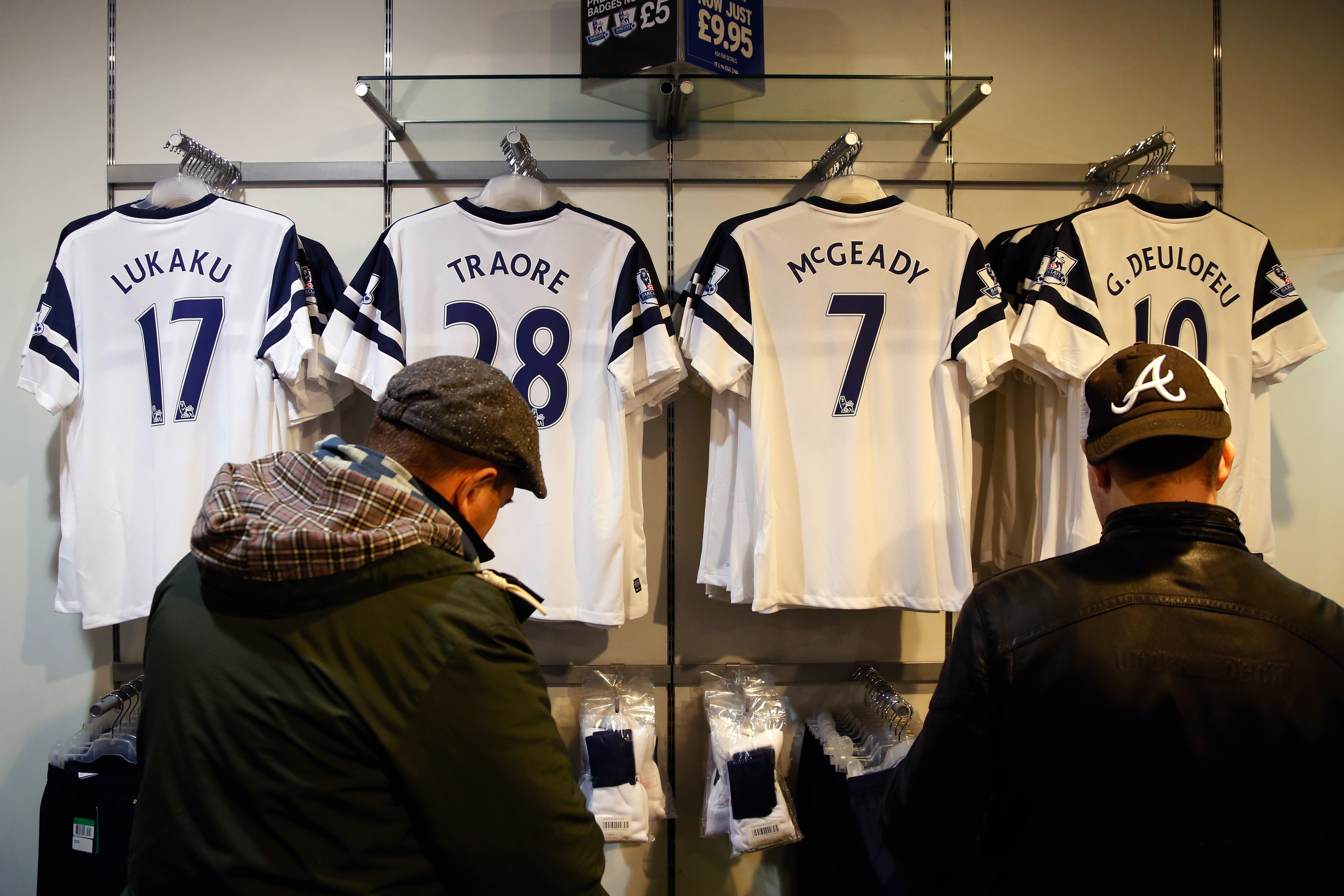 Getty Images | Fans browse through replica playing shirts inside the club shop before the Barclays Premier League match between Everton and West Ham at Goodison Park on March 1, 2014 in Liverpool, England.