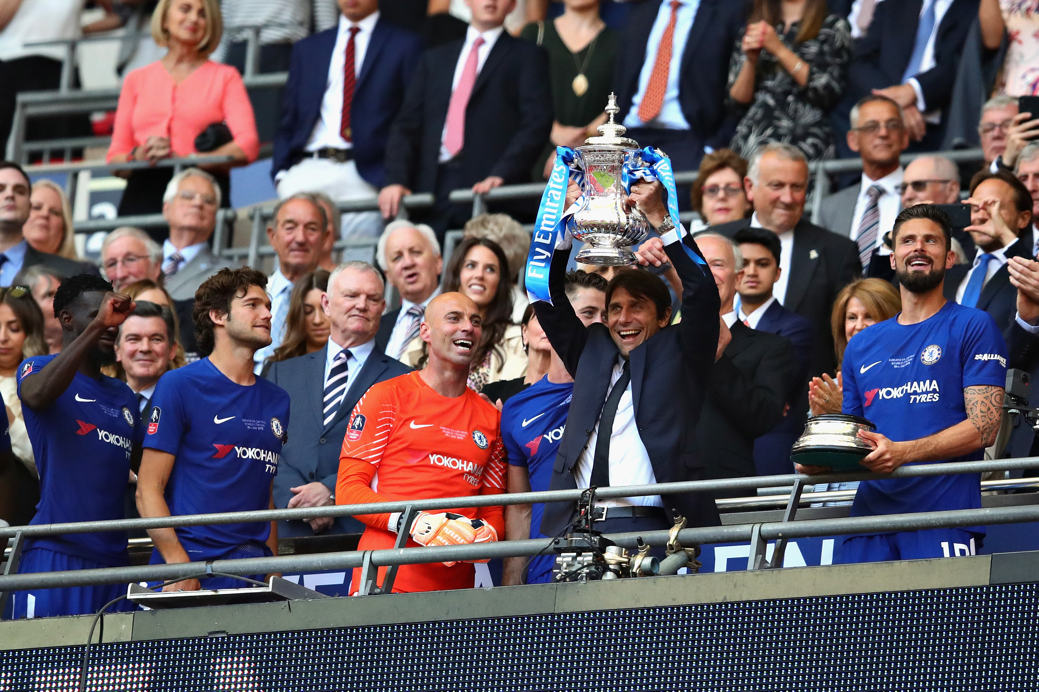 Getty Images | Compensation to former manager of Chelsea, Antonio Conte, who here lifts the FA Cup trophy after his team won during in 2018, har now been settled.