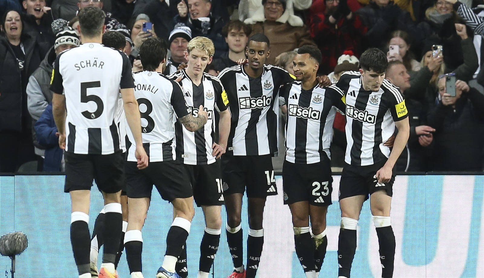 IMAGO | Newcastle United players celebrating Jacob Murphy's 4-0 goal against Leicester City at St. James Park.