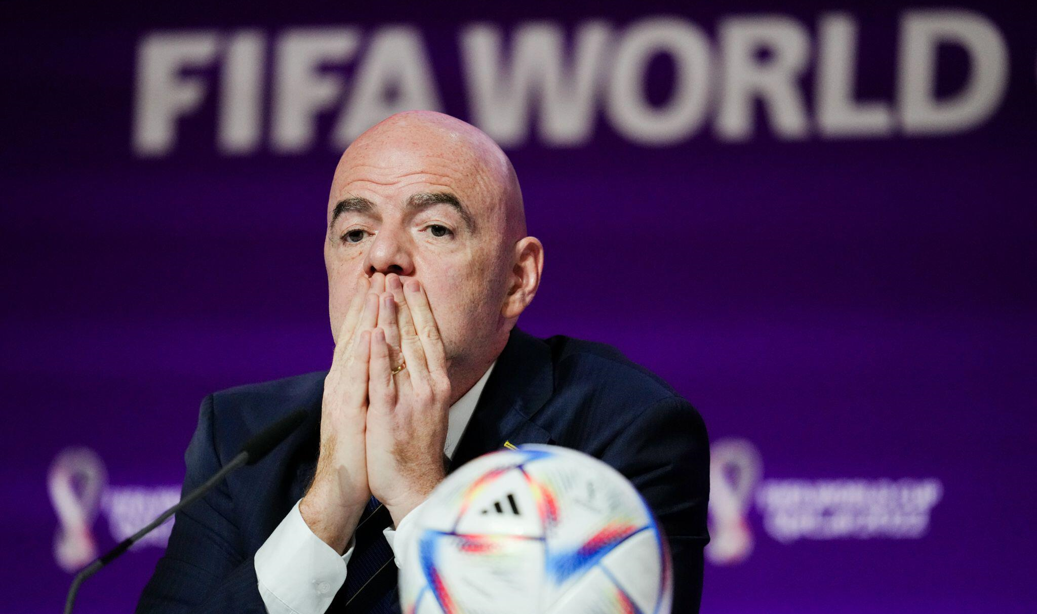 Alamy | FIFA President Gianni Infantino during a press conference at the Main Media Centre, ahead of the FIFA World Cup 2022 in Qatar.