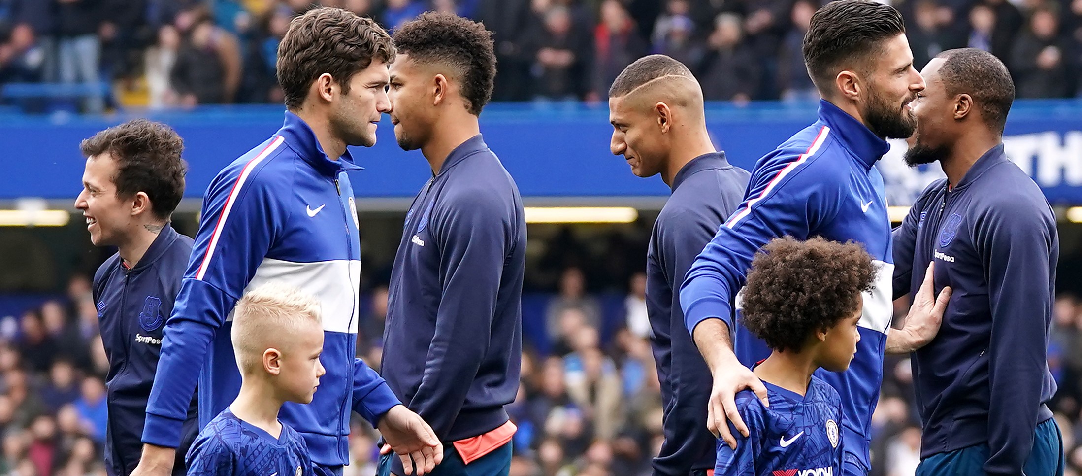 PA Images | Everton and Chelsea players walk past each other after the Premier League banned the pre-match handshake over coronavirus concerns.