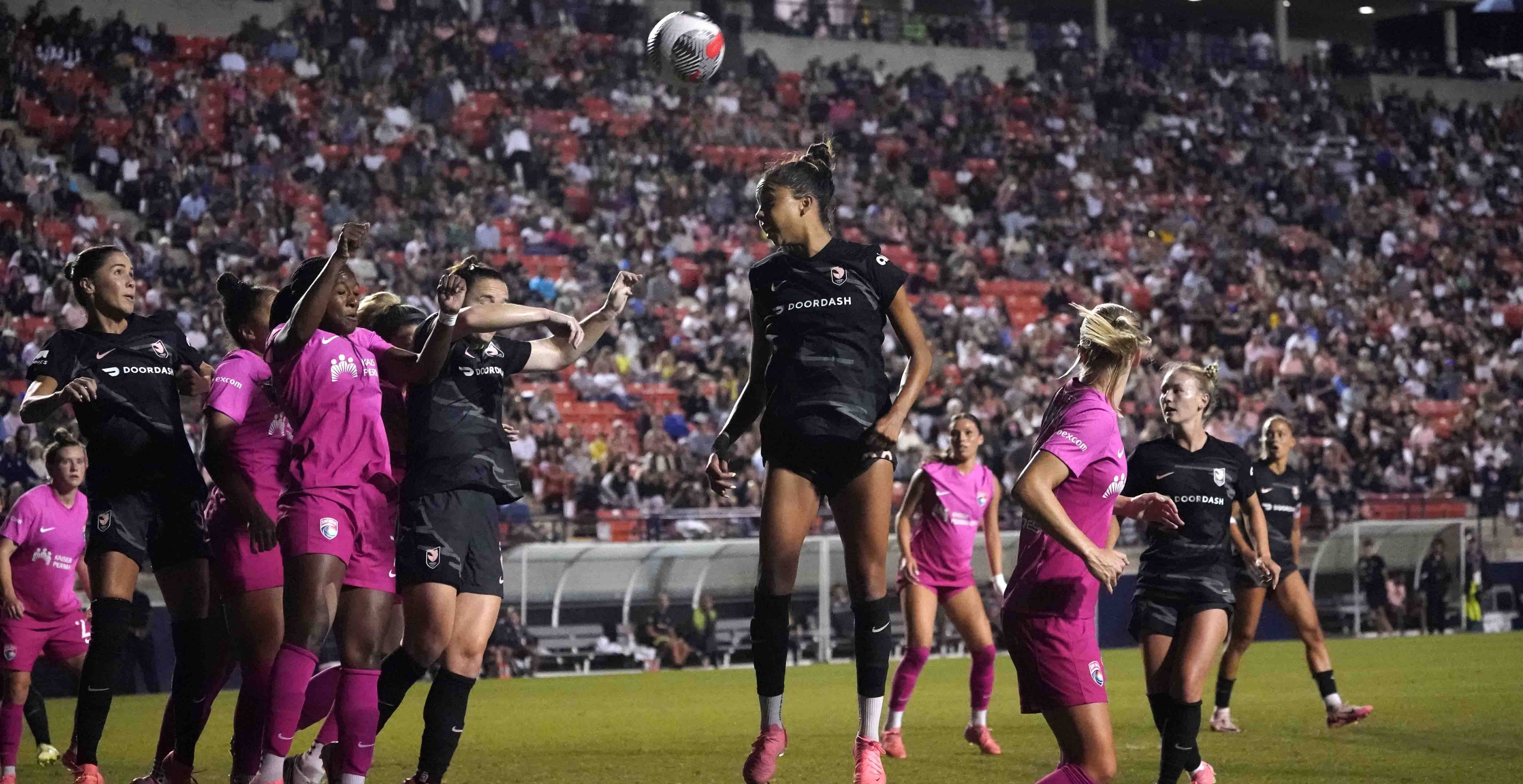 IMAGO | Angel City FC defeder Madison Hammond sends a head ball toward goal against San Diego Wave FC